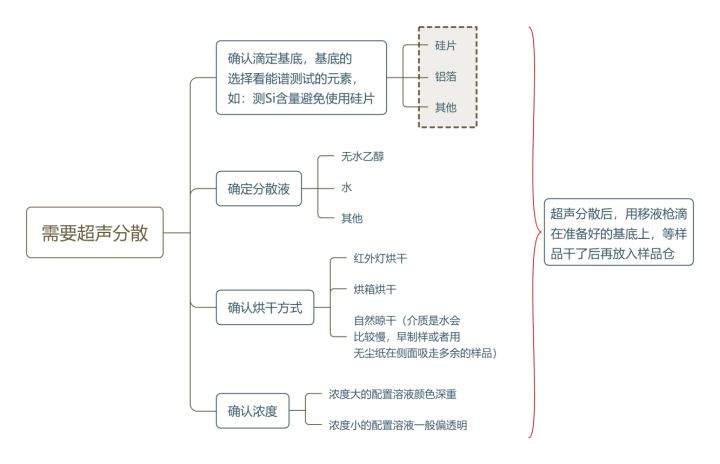 2.液體樣品。用移液槍取樣品超聲后的懸濁液,滴一滴于硅片、錫紙或鋁箔上,自然風(fēng)干、烘箱烘干或者紅外燈烘干即可,烘干后將硅片、錫紙或鋁箔用導(dǎo)電膠粘在樣品臺(tái)上測(cè)試。